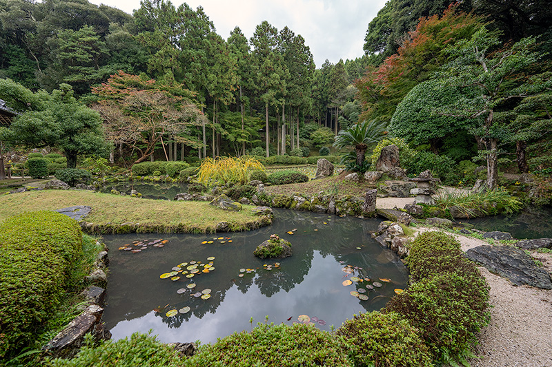 ツツジが美しいことから、地元では「ジジツ寺」と親しまれてきた勝定寺。庭園に恵まれた出雲エリアのなかでは、観光客には知られざる名園であり、庭園好きであれば足を伸ばして欲しい寺院である。勝定寺庭園は池泉庭園と枯山水で構成されているが、まずは池泉庭園から紹介していこう。
